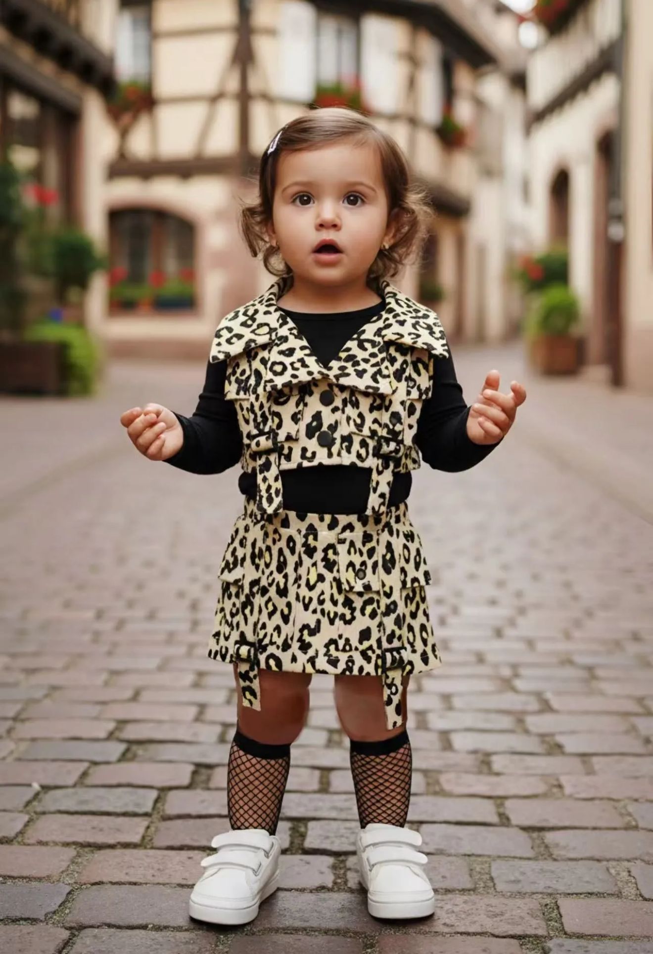 Conjunto compuesto por jersey interior + chaleco + falda con cintura engomada. Tallas 6 a 36 meses llevan calcetines de red con lazo. Resto de tallas NO incluidos.