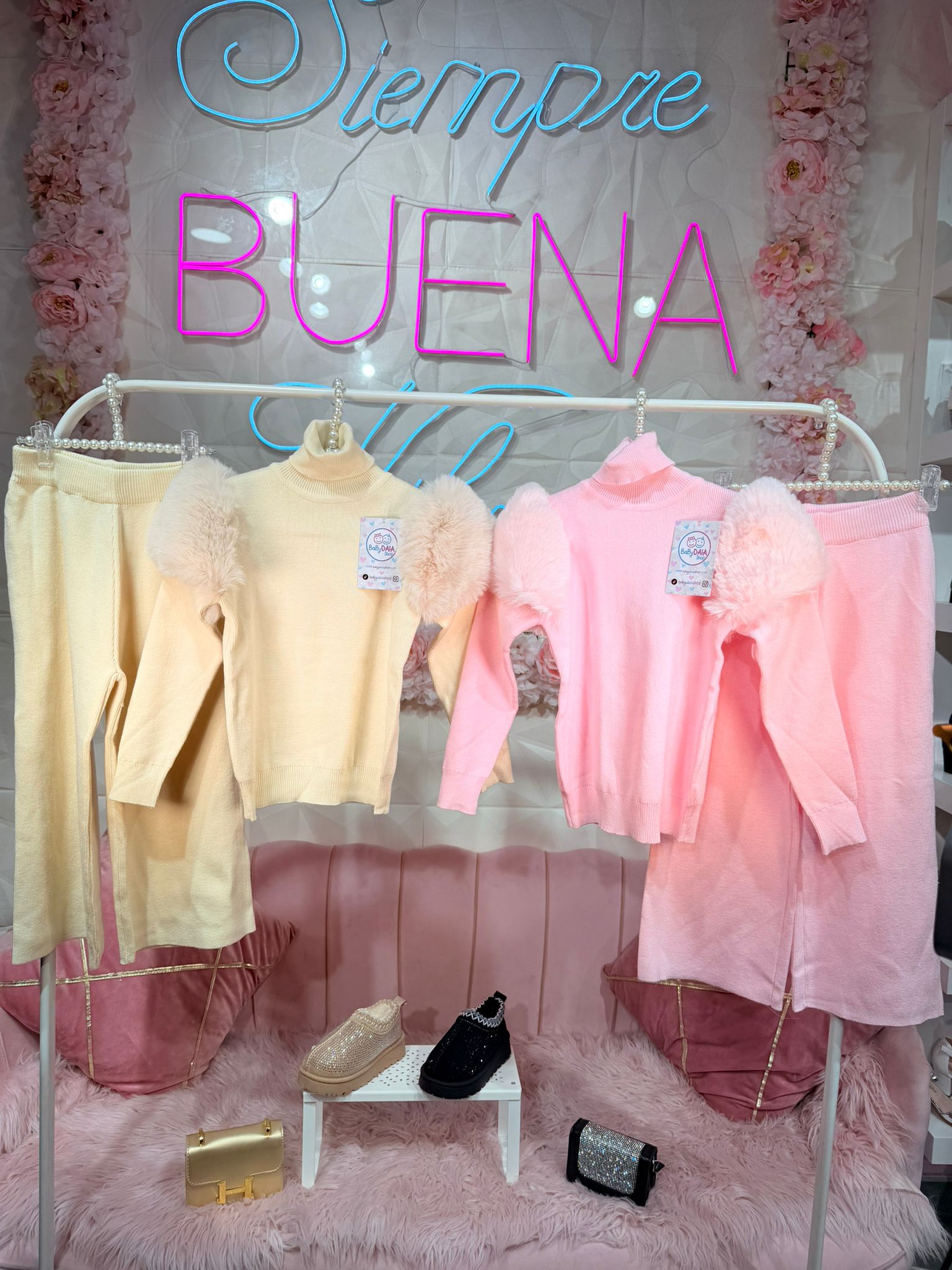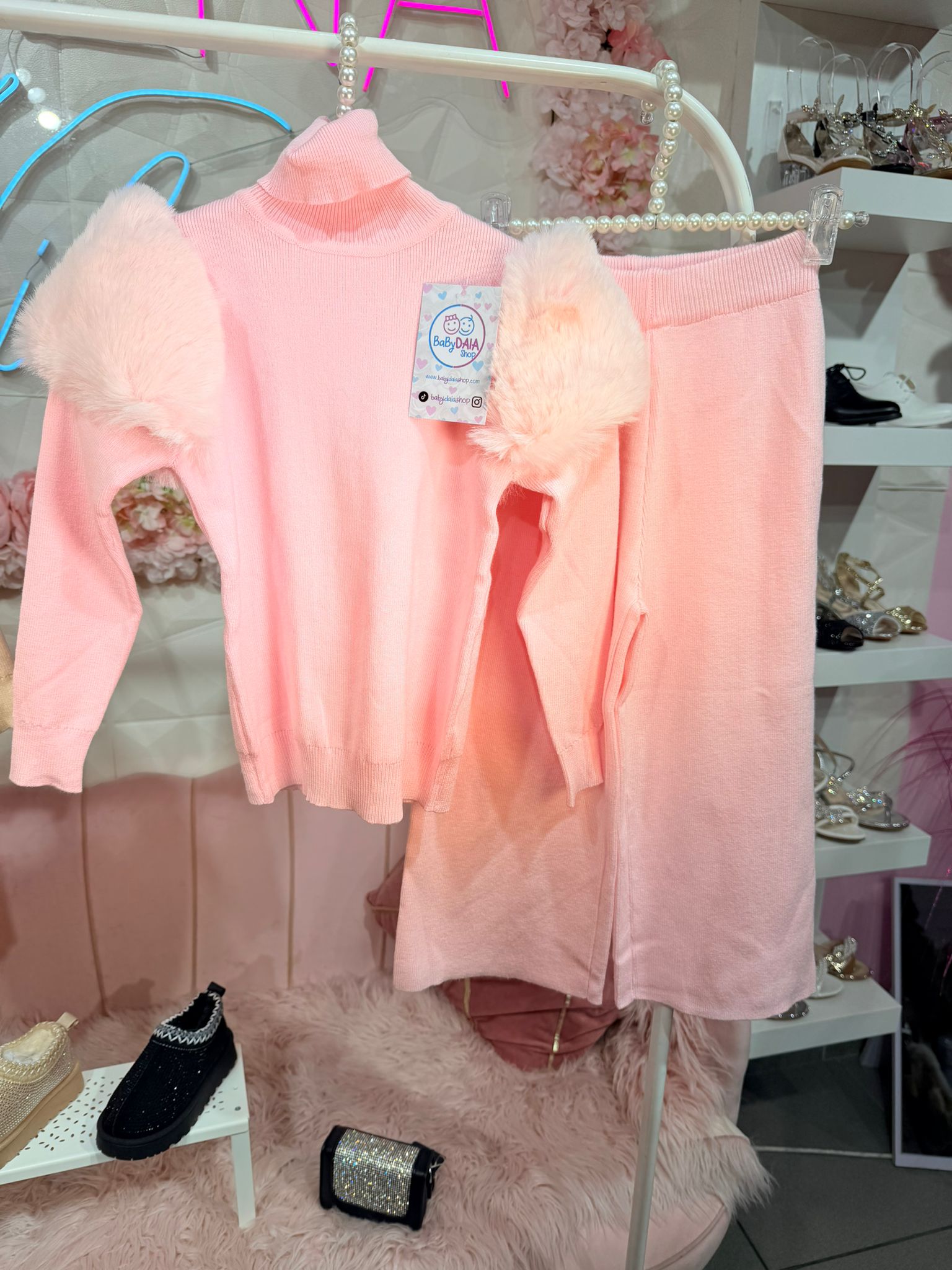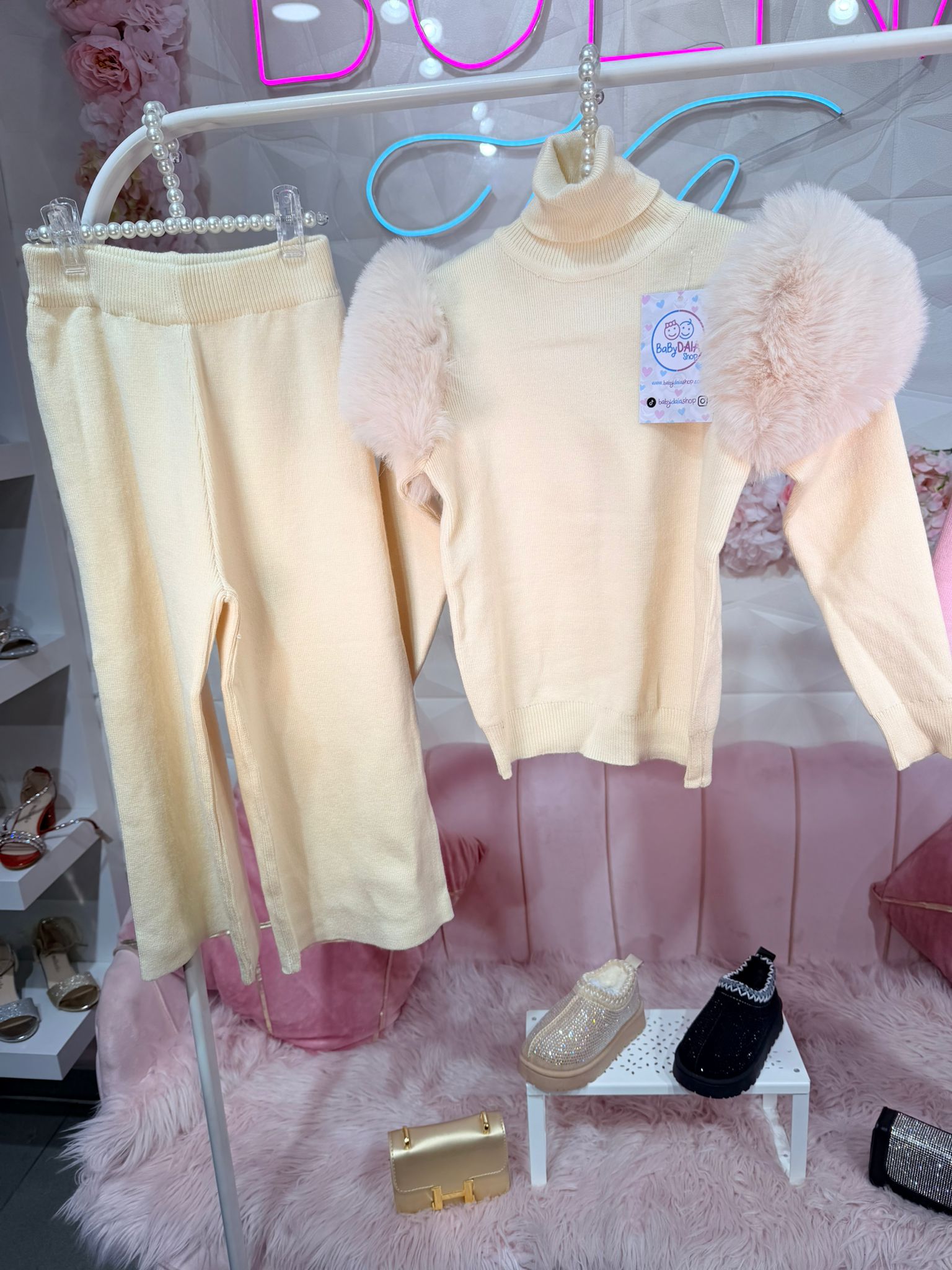 Combina el confort de un tejido de punto suave con un detalle que enamora, El Suéter de cuello alto y punto fino, con unas mangas abullonadas de pelo sintético.