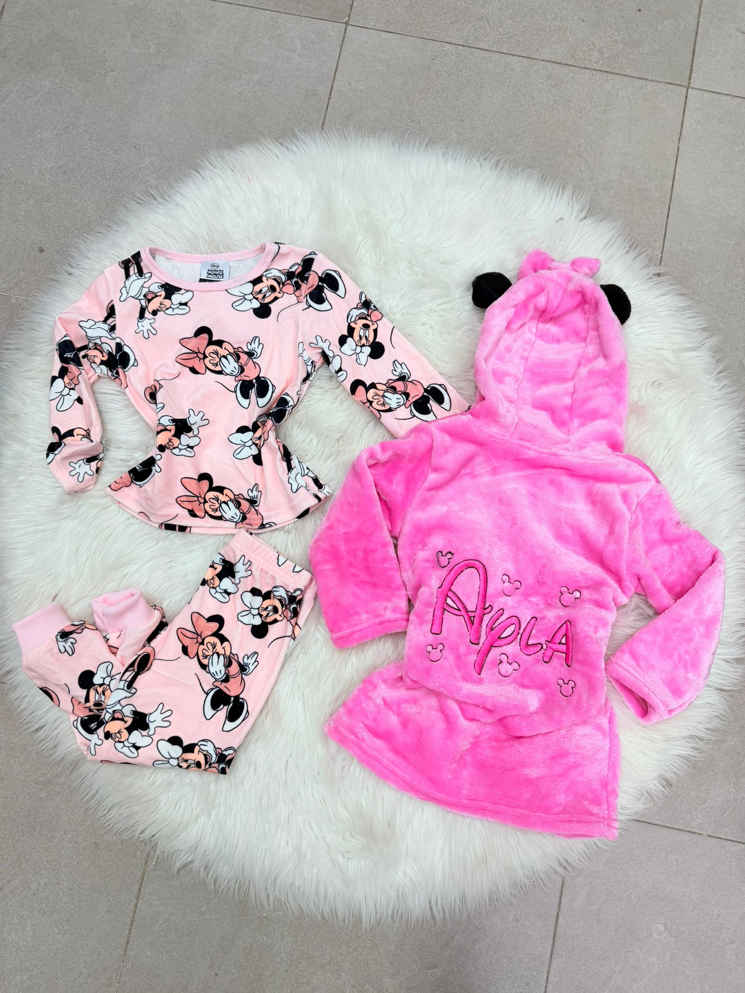 Precioso Pijama + Bata de Minnie Mouse, Producto oficial de Disney, se puede personalizar, puedes pedir la talla que desees, y contactarnos a través de WhatsApp para tramitar el personalizado. Si lo quieres con nombre son 10eur mas y el pago es por bizum.
