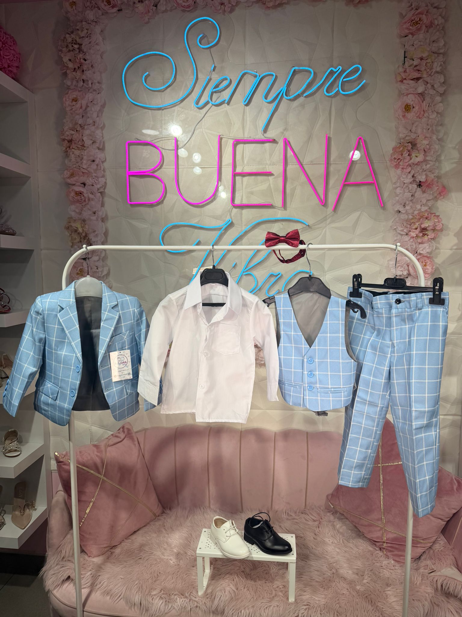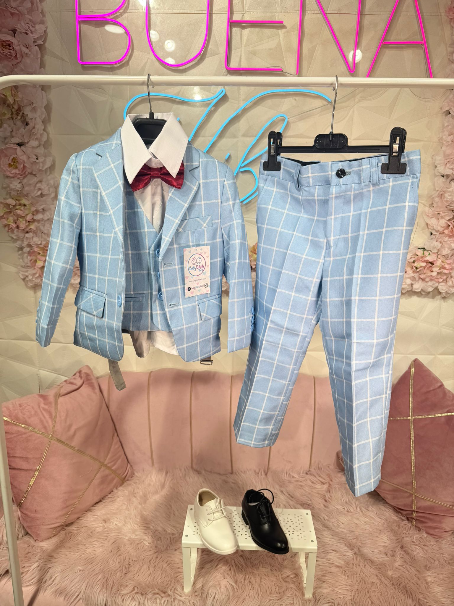 Traje compuesto por chaqueta + camisa + chaleco + pajarita + pantalon con cintura engomada. TALLA GRANDE
