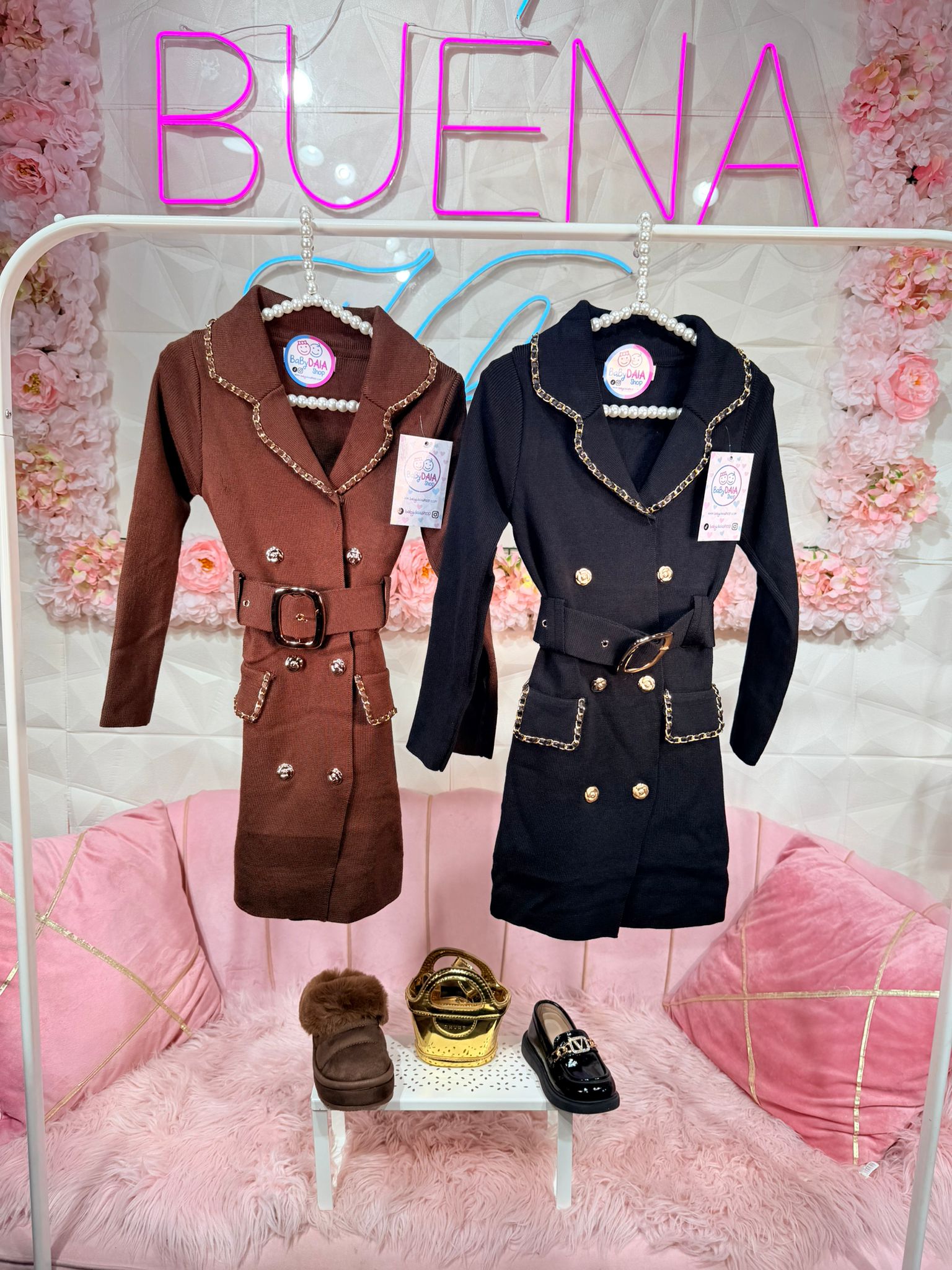 Precioso Vestido de colores de temporada, negro y chocolate, incluye el cinturón a juego.
