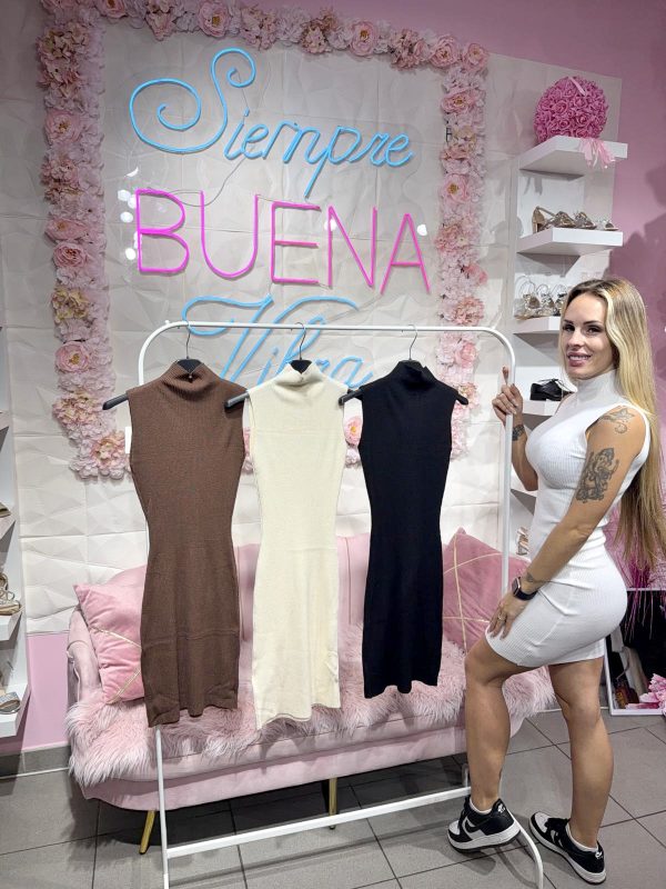 Vestido de punto con cuello alto. Super elástico, hasta la 42/44